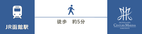 - 函館駅徒歩5分、函館朝市徒歩1分。