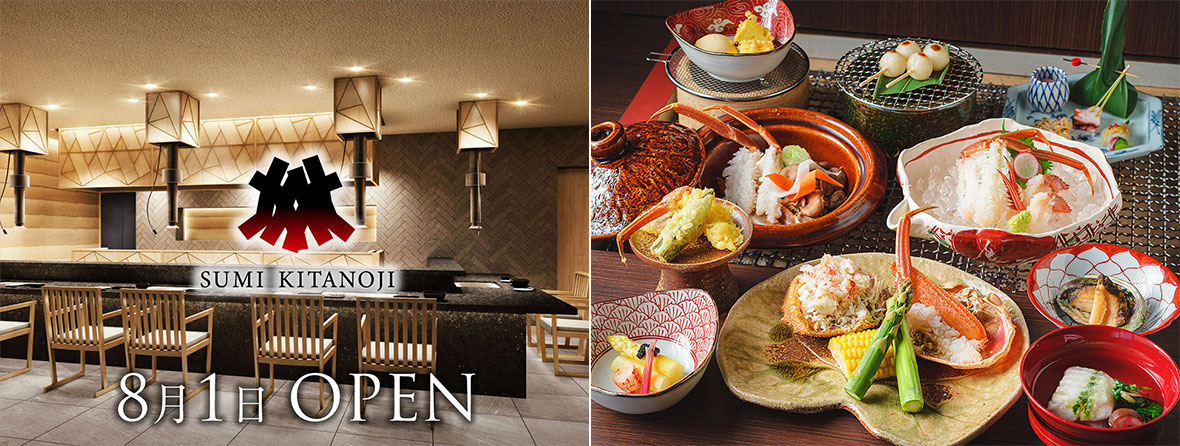 「炭⽕焼」をテーマに、北海道産⾷材の魅⼒を最⼤限に引き出した料理をご提供いたします。