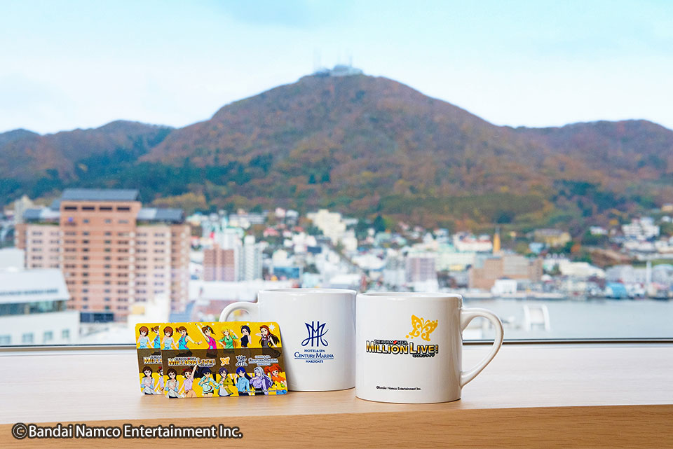 「アイドルマスター ミリオンライブ!」ロゴと「センチュリーマリーナ函館」ロゴを施したオリジナルマグカップ - オリジナルカードキー →